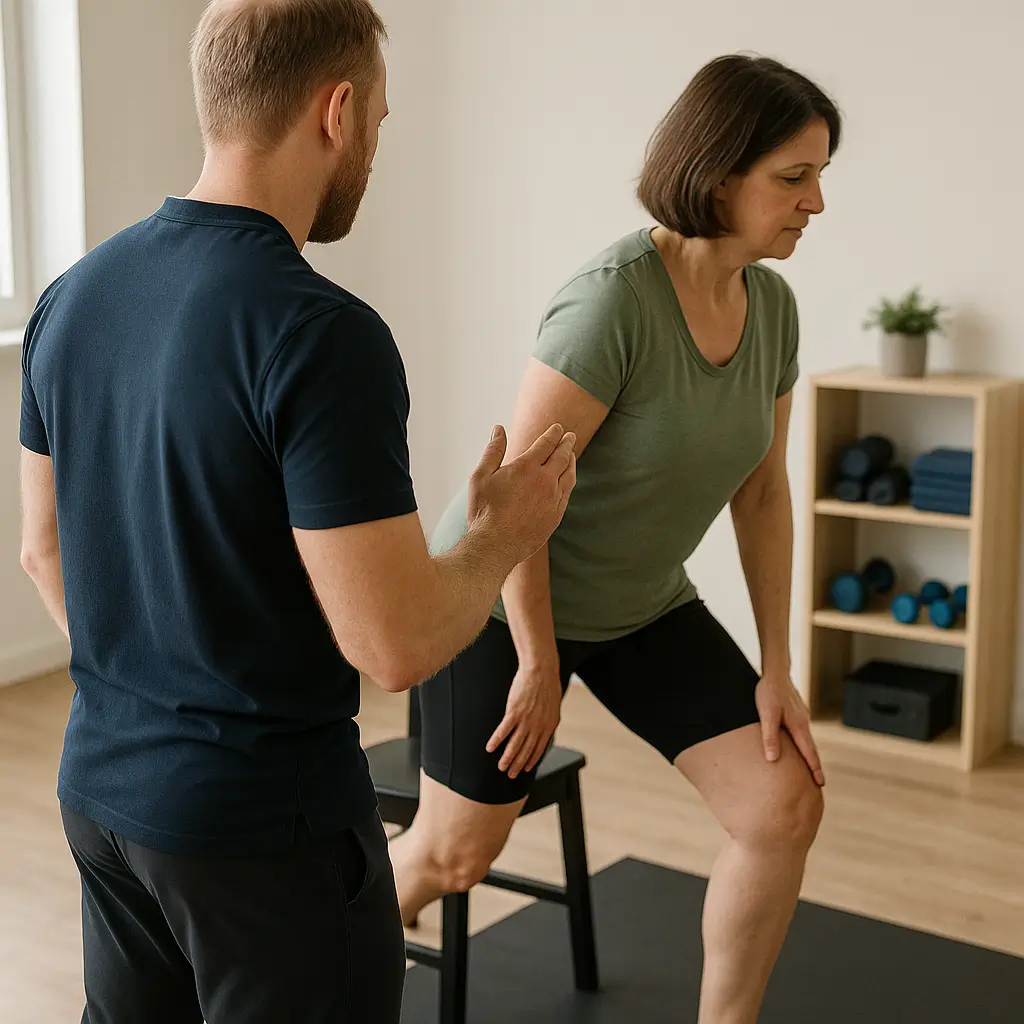 Unser Training begann auf einem Level, das ich anfangs fast belächelt hätte – minimale, fast unscheinbare Bewegungen zur Aktivierung meiner Muskulatur rund ums Knie. Aber als ich nach wenigen Wochen plötzlich wieder ohne Schmerzen aus der tiefen Hocke hochkam, wusste ich: Das hier funktioniert.